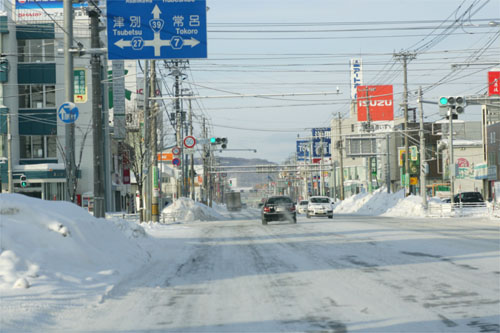 午前8時半過ぎ、国道39号、北見トヨペット前からとん田通り方向