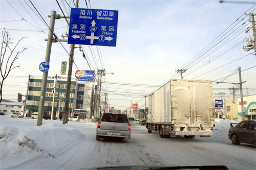 午前8時過ぎ、国道39号、北見トヨペット前からとん田通り方向