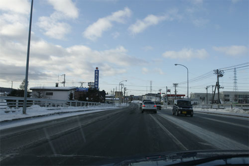 午前8時過ぎ、とん田通り、錦町の南岸通り交差点