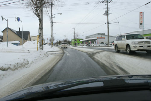 午前10時前、野付牛自動車学校前の南岸通りを無加川町方向