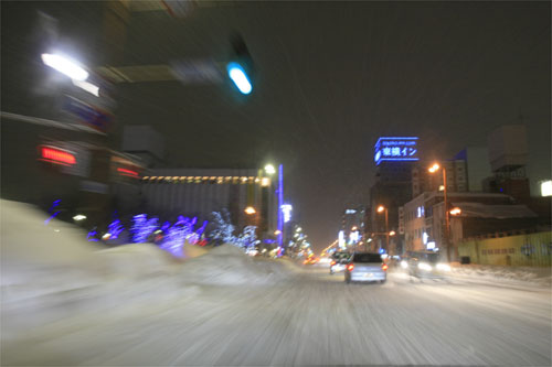 午後6時過ぎ、国道39号、北見駅前交差点から五差路方向