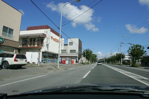 常盤通りの五差路手前、写真右奥に北見ハッカ記念館