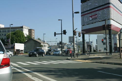 五差路の手前右、写真右奥に北見ハッカ記念館