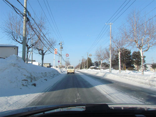 午前7時50分、野付牛自動車学校前の南岸通りを無加川町方向