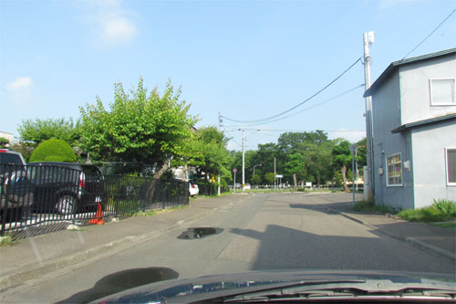道路の向こう、正面がヤマデン、右が寺前歯科