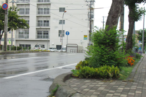道路の向こう、正面がヤマデン、右端が寺前歯科