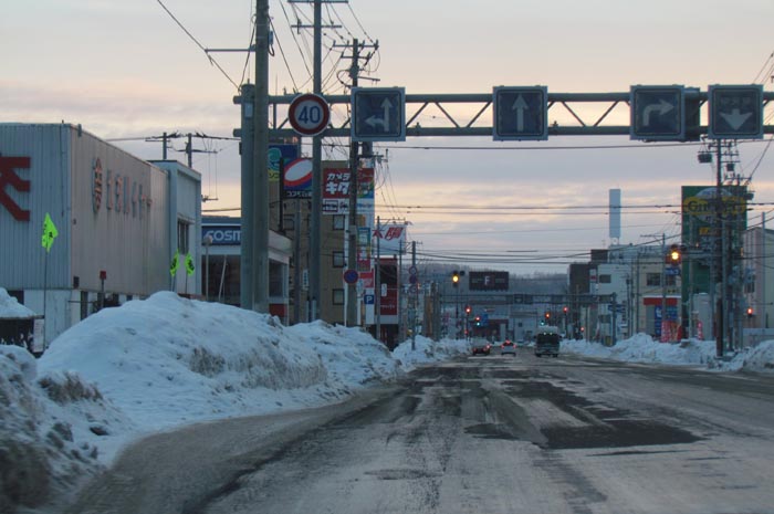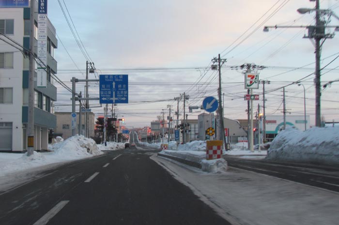 南岸通り、とん田通りの交差点から右は北光神社方向