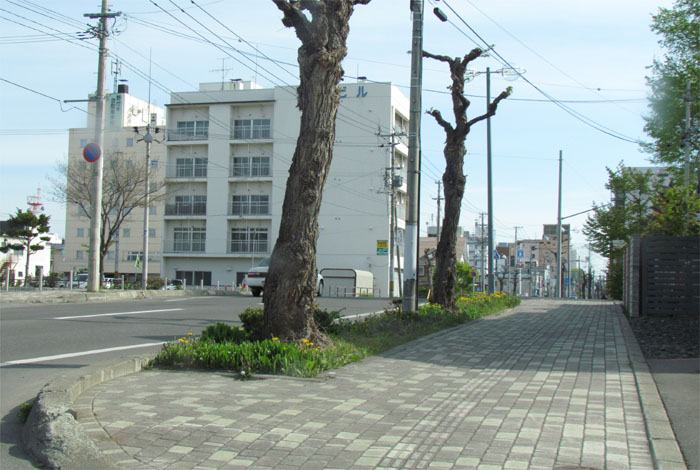 前方の街路樹の向こうが石北大通り