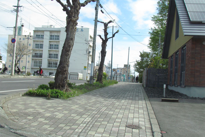 午前7時40分、松浦水産駐車場裏の通りを北3条通り側から北4条通り方向
