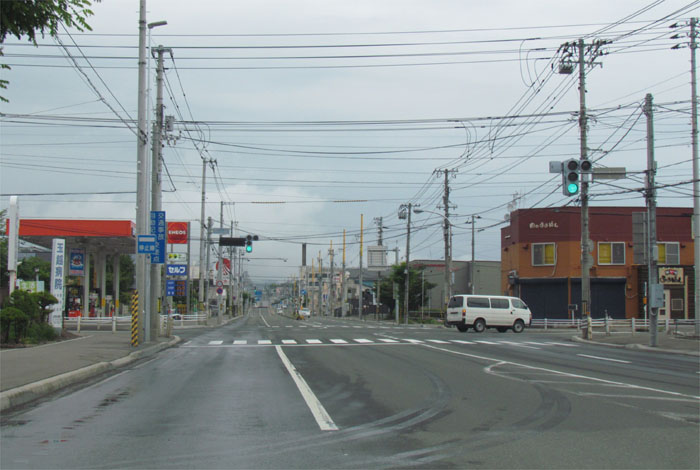 南岸通り、とん田通りの交差点から右は北光神社方向