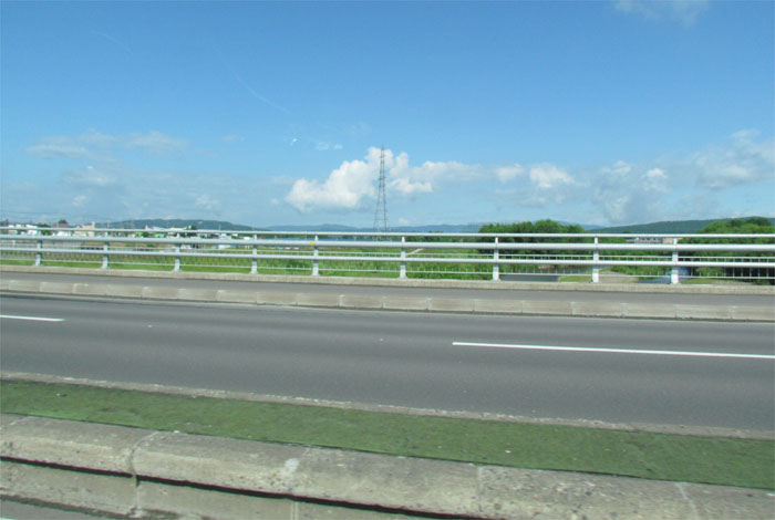 午前7時50分、とん田通り、無加川橋から上流の仁頃山の方向