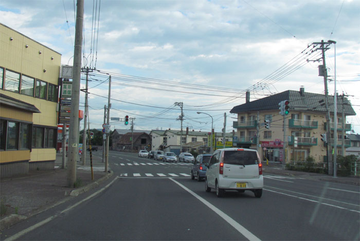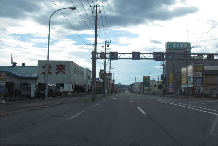 南岸通り、とん田通りの交差点から右は北光神社方向