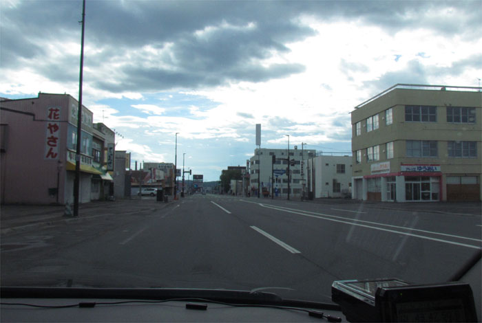 末広町の南岸通り、西4号線バス停前から野付牛自動車学校方向