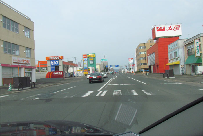 午前7時50分、北4条通りの国道39号交差点から緑園通り方向