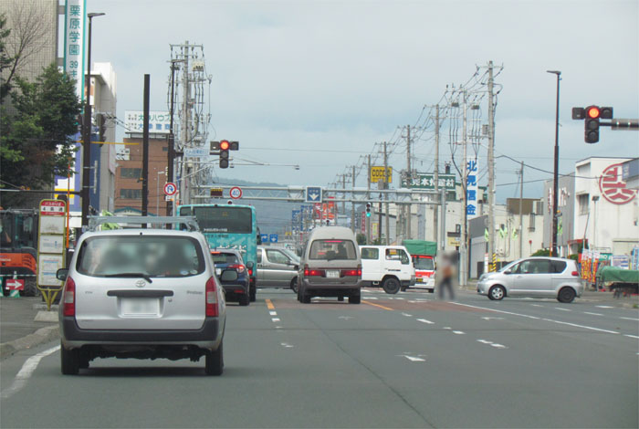 午前7時50分、北4条通りの国道39号交差点から緑園通り方向