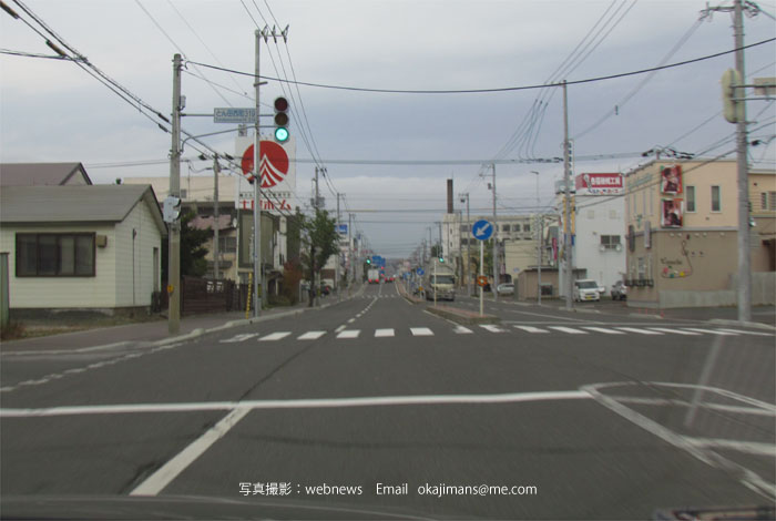 末広町の南岸通り、西4号線バス停前から野付牛自動車学校方向