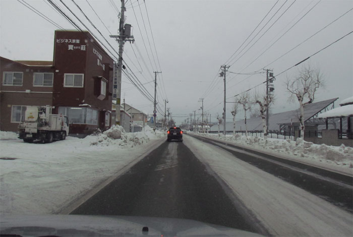 午前7時50分、南岸通り、野付牛自動車学校前から無加川町方向