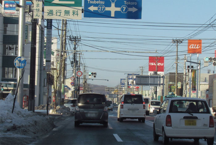 国道39号、北見トヨペット前からとん田通り交差点方向