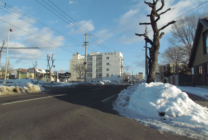 午前7時40分、松浦水産駐車場裏の通りを北3条通り側から北4条通り方向
