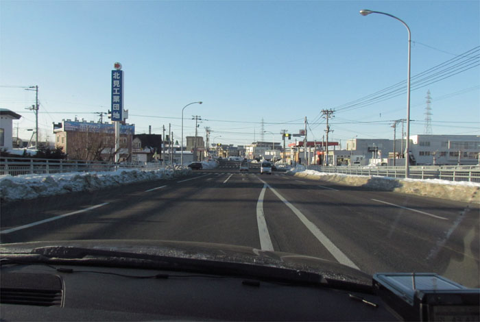 午前7時50分、とん田通り、北見中央病院