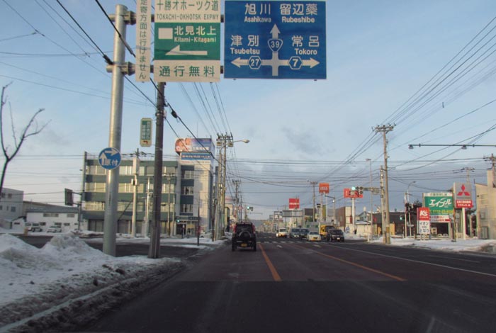 国道39号、北見トヨペット前からとん田通り交差点方向
