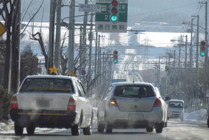 昭和通りの左は東7号線春光通りの柏陽駅方向