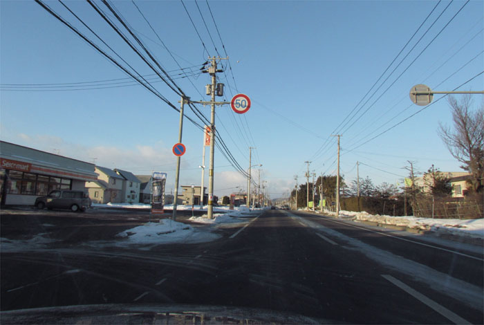 午前7時50分、南岸通り、野付牛自動車学校前から無加川町方向