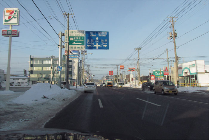 国道39号、北見トヨペット前からとん田通り交差点方向
