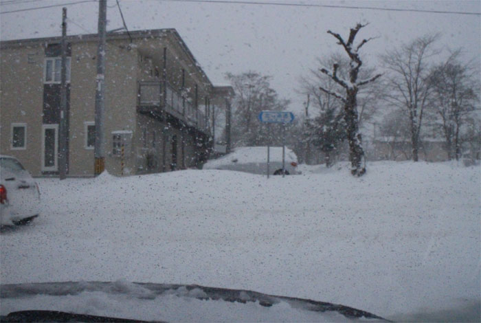 午前7時40分、松浦水産駐車場裏の通りを北3条通り側から北4条通り方向