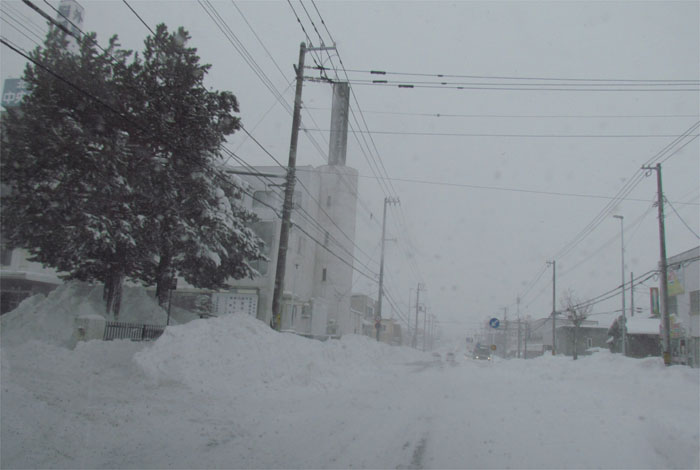 午前7時50分、とん田通り、北見中央病院