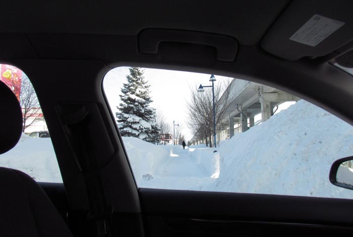前方がJR石北本線高架橋、写真右が北見駅方向