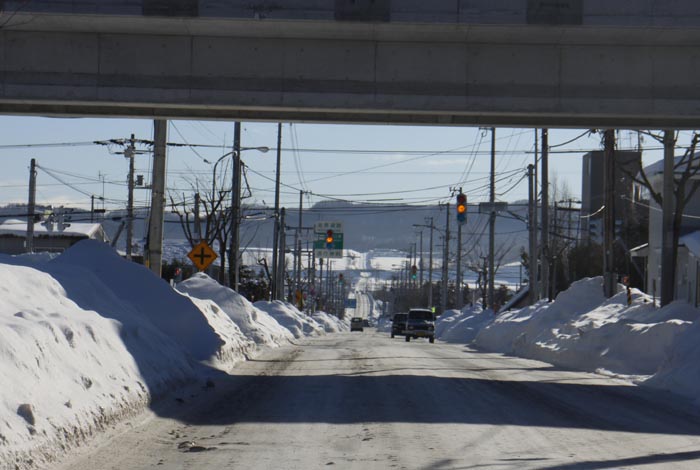 昭和通りのJR高架橋下から北見大橋方向