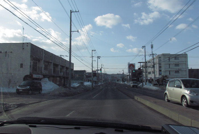 午前7時50分、とん田通り、北見中央病院