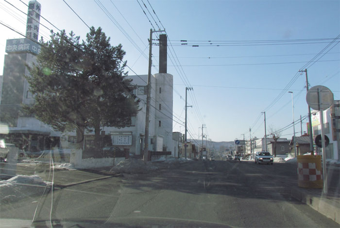 午前7時50分、とん田通り、北見中央病院