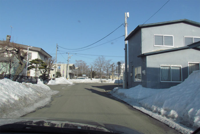 午前7時40分、松浦水産駐車場裏の通りを北3条通り側から北4条通り方向