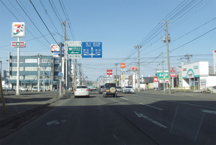 国道39号、北見トヨペット前からとん田通り交差点方向