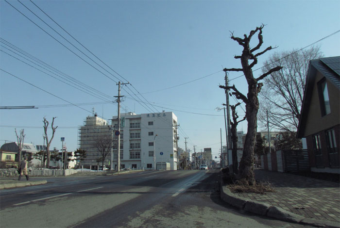 午前7時40分、松浦水産駐車場裏の通りを北3条通り側から北4条通り方向