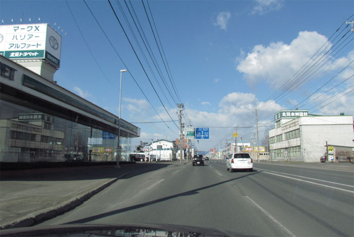 国道39号、北見トヨペット前からとん田通り交差点方向