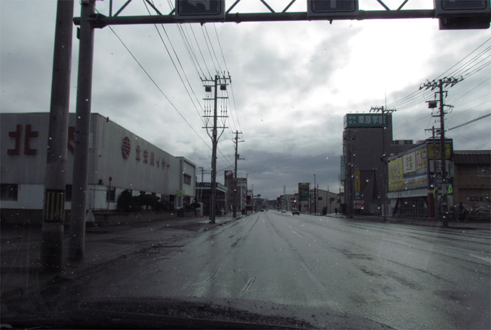 南岸通り、野付牛自動車学校前、奥がとん田通りの交差点
