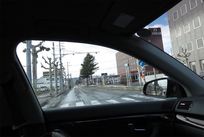 午前7時50分、北4条通りの国道39号交差点から緑園通り方向