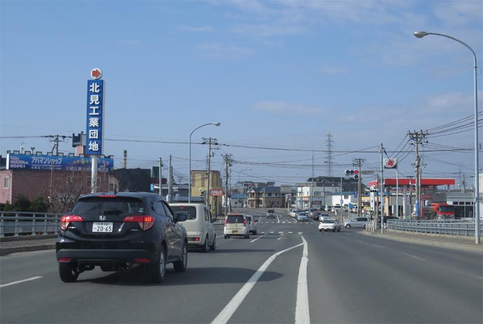 とん田通り、北見中央病院側から南大通り交差点