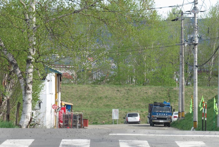 交差点から奥が無加川の右岸堤防で写真奥が国道39号方向