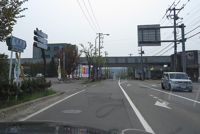 前方がJR石北本線高架橋、写真右が北見駅方向
