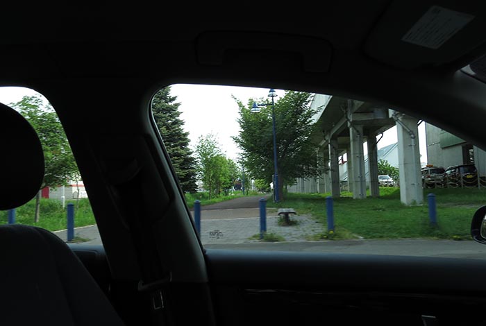 前方がJR石北本線高架橋、写真右が北見駅方向