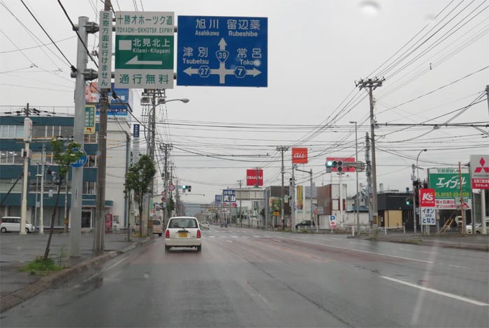 国道39号、北見トヨペット前からとん田通り交差点方向