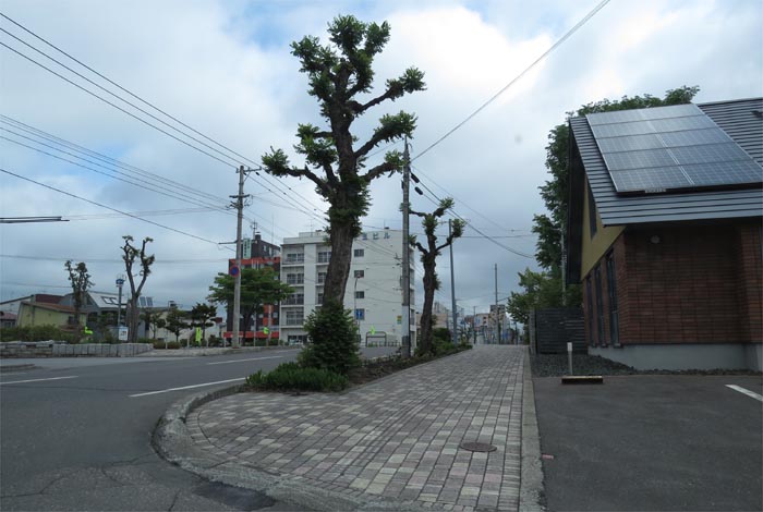 午前7時40分、松浦水産駐車場裏の通りを北3条通り側から北4条通り方向