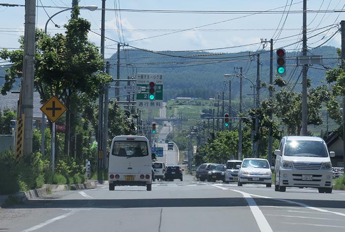 前方がJR石北本線高架橋、写真右が北見駅方向