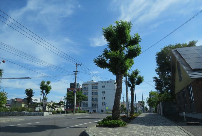 前方の街路樹の向こうが石北大通り