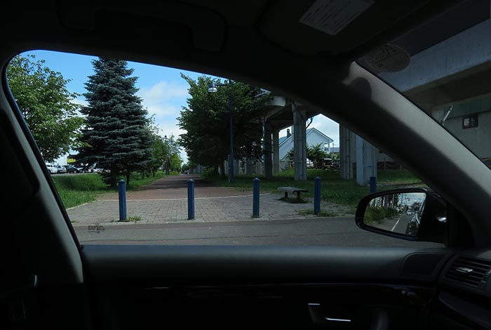 前方がJR石北本線高架橋、写真右が北見駅方向