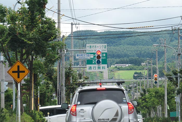 前方がJR石北本線高架橋、写真右が北見駅方向